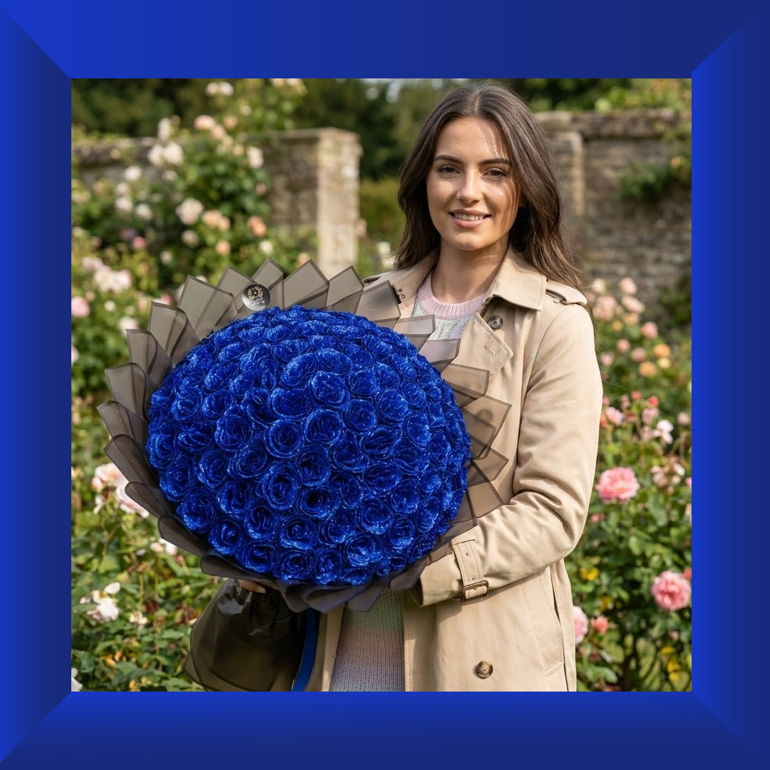 Experience bold elegance and timeless sophistication with the Midnight Sapphire Eternity Bouquet — a luxury floral masterpiece designed to captivate from every angle. Featuring 101 full glitter silicone roses in a deep, mesmerizing sapphire blue, this bouquet radiates confidence, loyalty, and everlasting love.