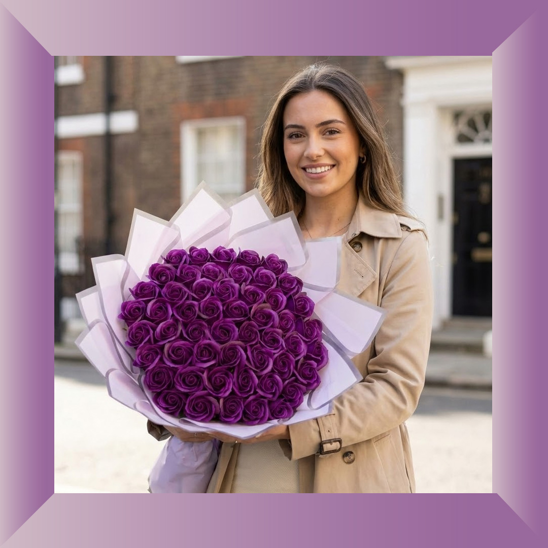Order the Royal Amethyst 51 Soap Rose Bouquet today from Aromatic Bouquets and give a gift that combines elegance and lasting beauty. With trusted UK delivery, we make it easy to send premium bouquets across the country.